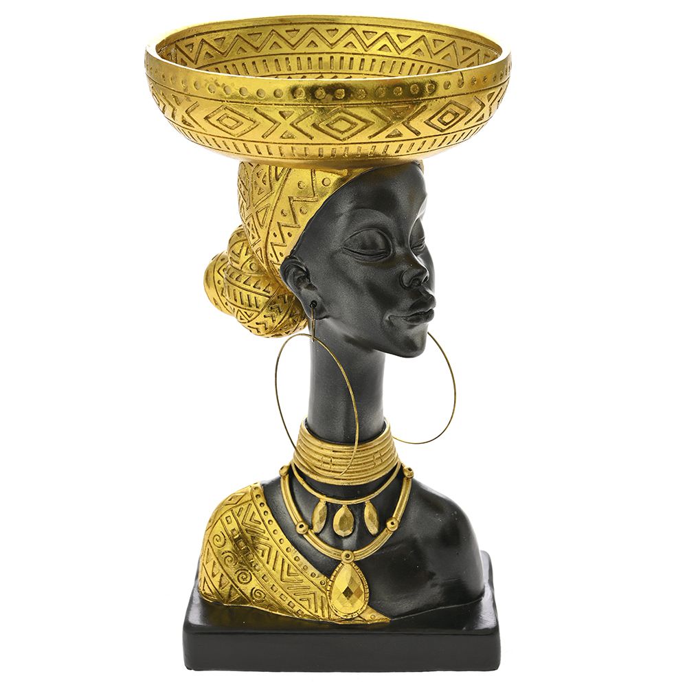 Δώστε μια μοναδική και καλλιτεχνική πινελιά στον χώρο σας με αυτή την εντυπωσιακή φιγούρα Αφρικάνας σε μαύρο χρώμα με χρυσές λεπτομέρειες. Ιδανική για διακόσμηση σαλονιού, γραφείου ή οποιουδήποτε χώρου θέλετε να αναδείξετε την αισθητική σας.Η φιγούρα συνδυάζει κομψότητα και εκλεπτυσμένη λεπτομέρεια, ενώ το μαύρο και χρυσό χρώμα προσδίδουν πολυτέλεια και στιλ. Μπορεί να τοποθετηθεί σε ράφι, τραπέζι ή κονσόλα, αναβαθμίζοντας άμεσα τον χώρο με μια μοναδική διακοσμητική παρουσία.