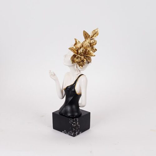 Αναδείξτε τον χώρο σας με αυτό το εκλεπτυσμένο διακοσμητικό γλυπτό γυναίκας που κρατά ένα λουλούδι, σε μια υπέροχη παλέτα μαύρου, λευκού και χρυσού,το γλυπτό αποτελεί εντυπωσιακό διακοσμητικό στοιχείο, ιδανικό για σαλόνια, εισόδους, τραπεζάκια ή γραφεία.Η λεπτομερής σχεδίαση αποτυπώνει τη θηλυκή χάρη και την εσωτερική γαλήνη, ενώ το λουλούδι προσθέτει μια νότα ρομαντισμού και φρεσκάδας.