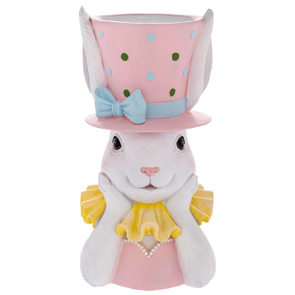 • Η κατασκευή από πολυρεζίνη προσφέρει ανθεκτικότητα και προσεγμένο σχεδιασμό, ενώ το σχήμα του λαγού δημιουργεί μια γλυκιά και ανοιξιάτικη ατμόσφαιρα. Το κασπώ μπορεί να χρησιμοποιηθεί για μικρά φυτά, λουλούδια ή διακοσμητικές πασχαλινές συνθέσεις.