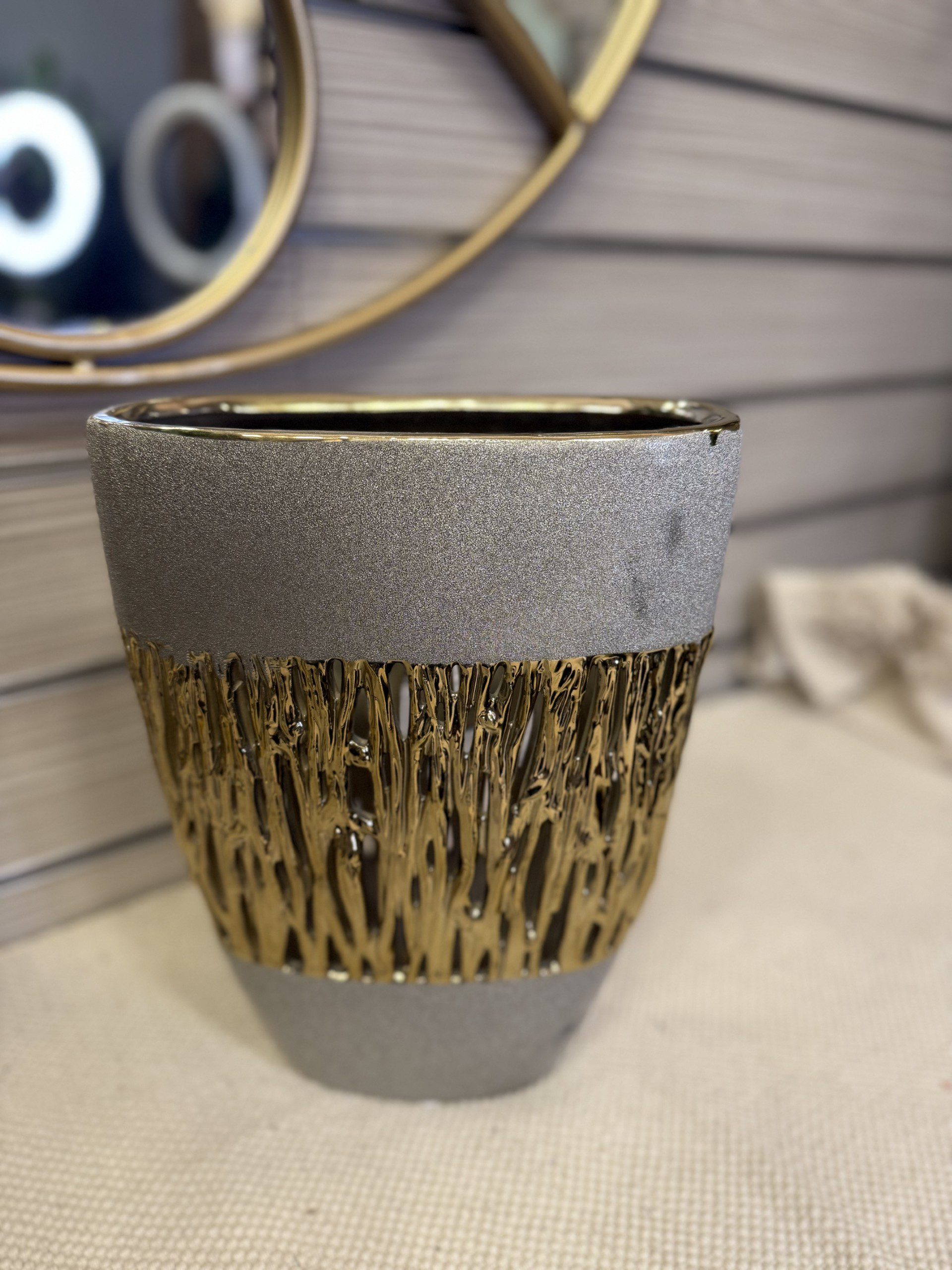 βαζο κεραμικο γκρι χρυσο